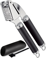 Mutfak aksesuarları sıcak satış Set manuel paslanmaz çelik yumuşak sap ile sarımsak presi sarımsak soyucu ve fırça ile